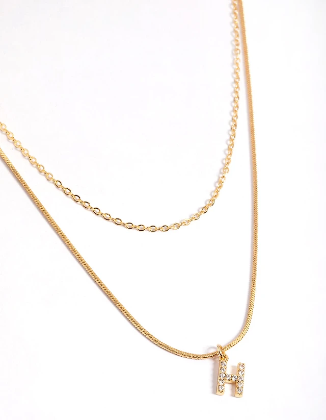 Gold Plated Diamante Letter H Layered Necklace