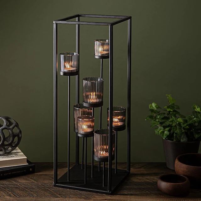 KSP Elevate '7-Lite' Iron Candleholder 24" H (Black/Smoke)