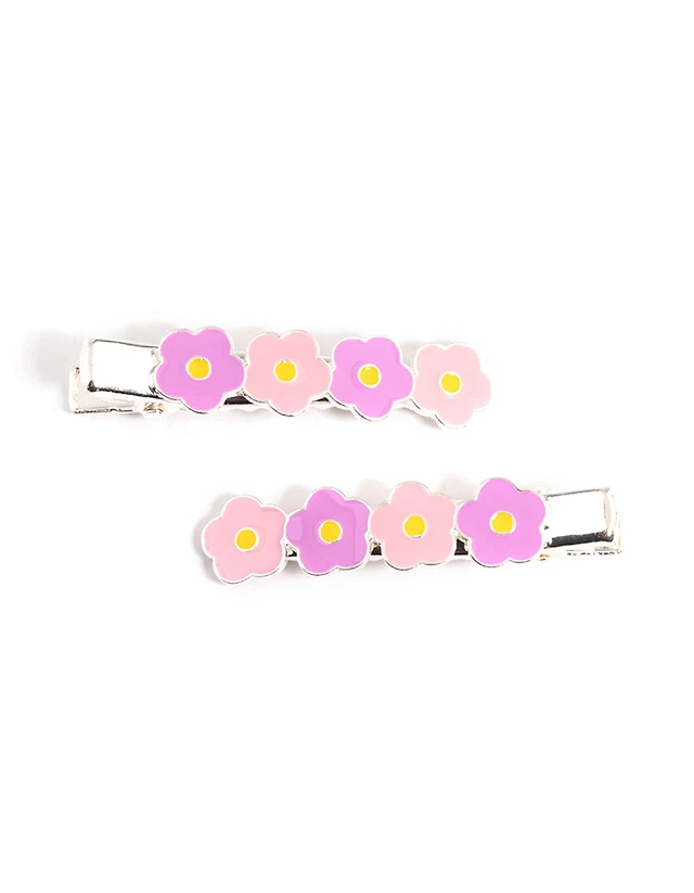Kids Fabric Diamante Flower Pink Clip 6-Pack