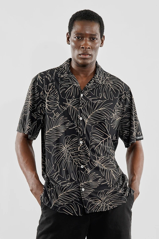 Travel Collection Tropical Print Button Up Casual Shirt - Blue