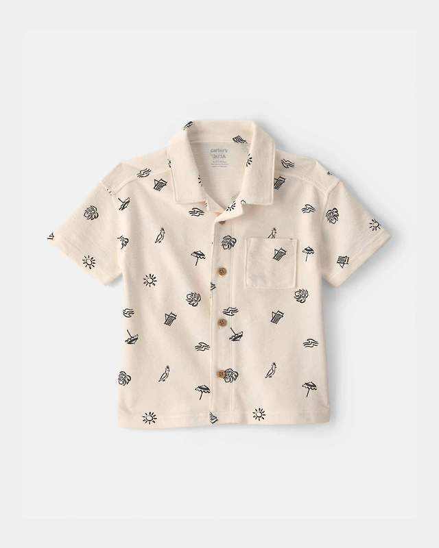 Toddler Boy Beach Short-Sleeve Button-Down Shirt - Cream/Black