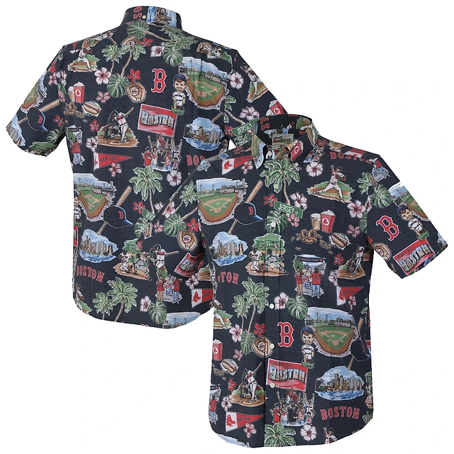 Men's Reyn Spooner Navy Boston Red Sox Scenic Tri-Blend Button-Down Shirt
