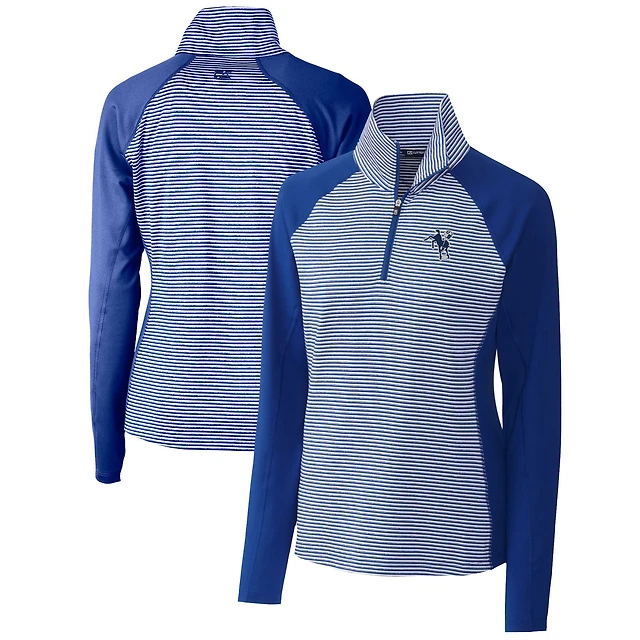 Women's Cutter & Buck Royal Indianapolis Colts Throwback Logo Forge Tonal Stripe Stretch Half-Zip Pullover Top