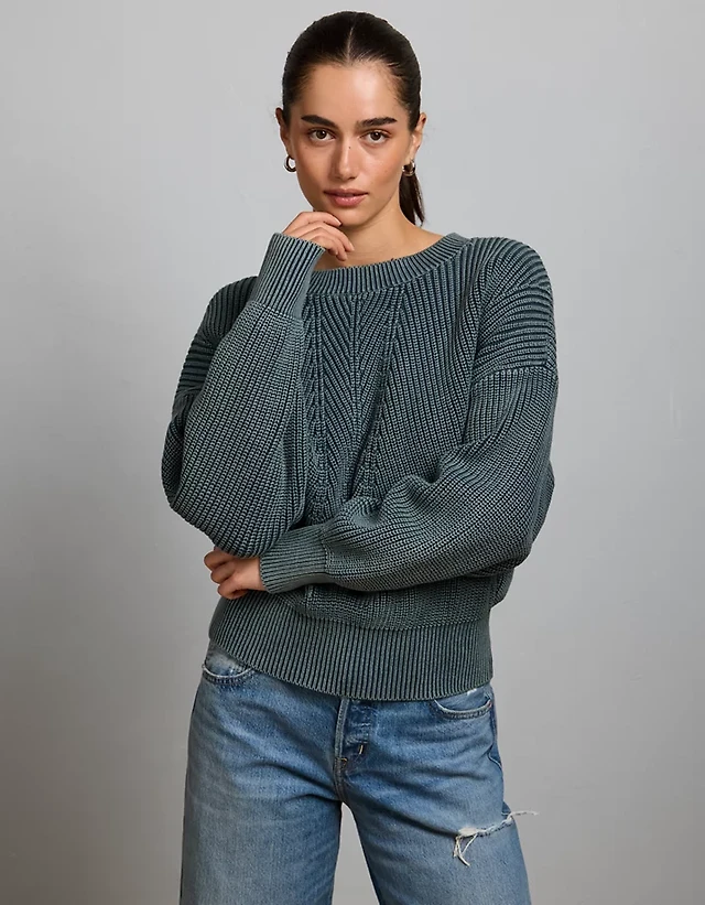 AE Cable Knit Crew Neck Sweater