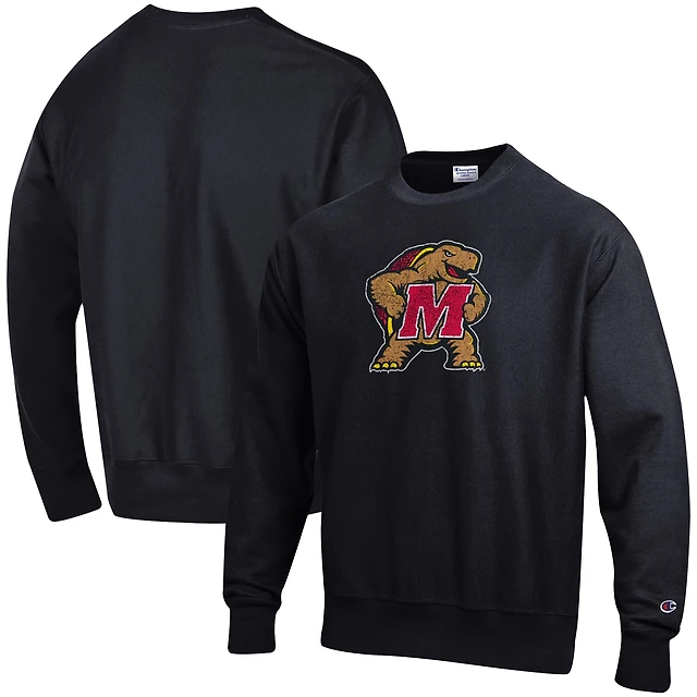 Men's Champion Black Maryland Terrapins Vault Logo Reverse Weave Pullover Sweatshirt