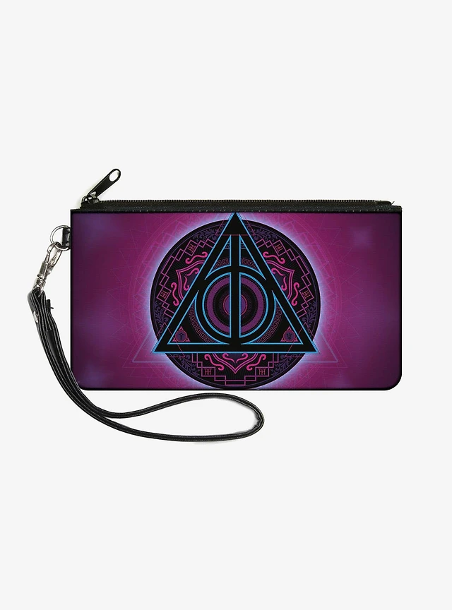 Harry Potter Deathly Hallows Symbol2 Black Neon Pink Blue Wallet Canvas Zip Clutch