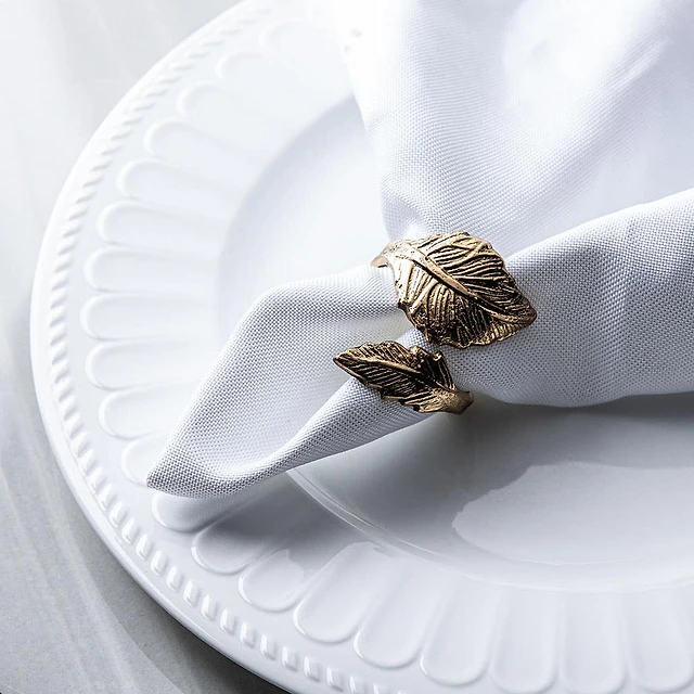 KSP Gather & Dine 'Leaf' Napkin Ring (Shiny Brass)