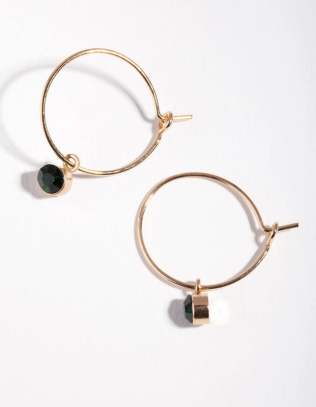 Green Amazonite & Diamante Huggie Hoop Earrings