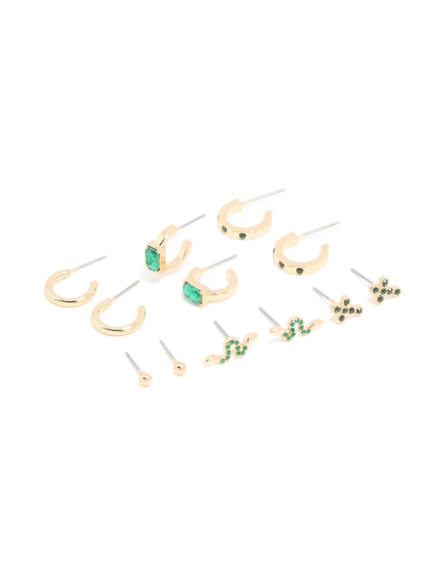 Rose Gold Plain & Diamante Huggie Earring Pack