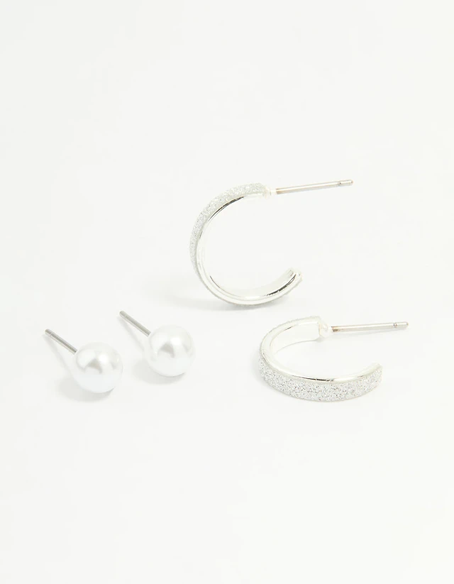 Silver Charm & Pearl Stud Earrings 6-Pack