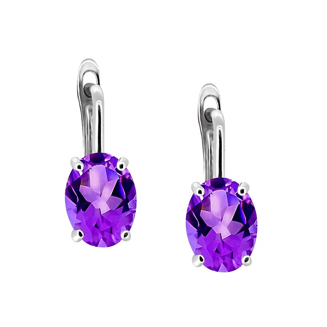 Earrings with 5MM Round Amethyst in 10kt White Gold