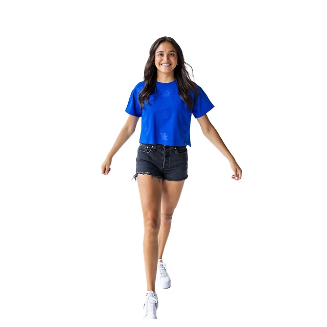 Women's Gameday Social Blue Kentucky Wildcats Allover Print Heavyweight Cropped T-Shirt