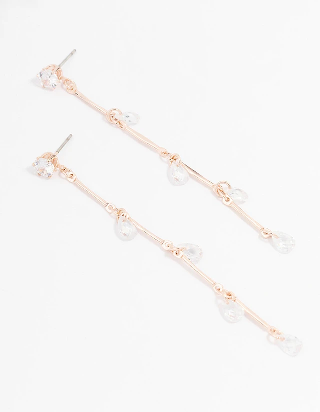 Rose Gold Diamante Teardrop Clicker Huggie Earrings