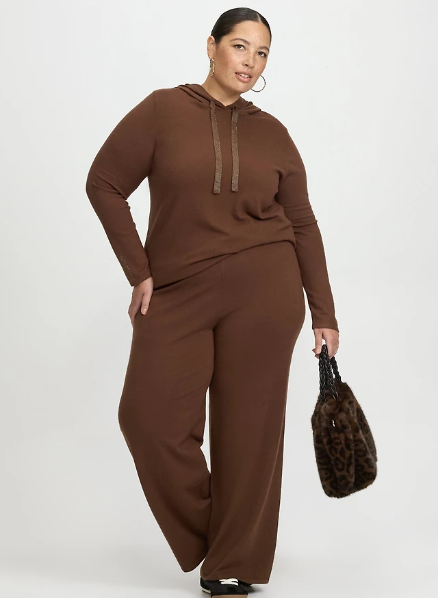 Embellished Hooded Pullover & Knit Straight-Leg Pants