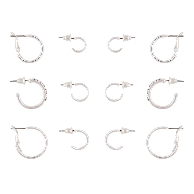 Silver Paved Heart Flower Clip On Earrings 5-Pack