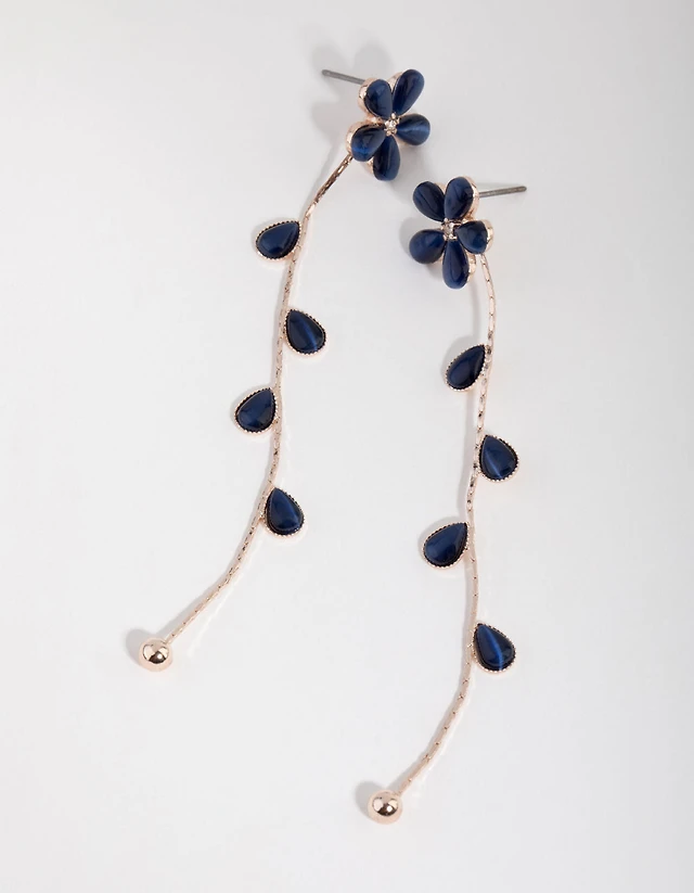 Diamond Accent Triple Pinwheel Flower Drop Earrings in Sterling Silver and 10K Gold