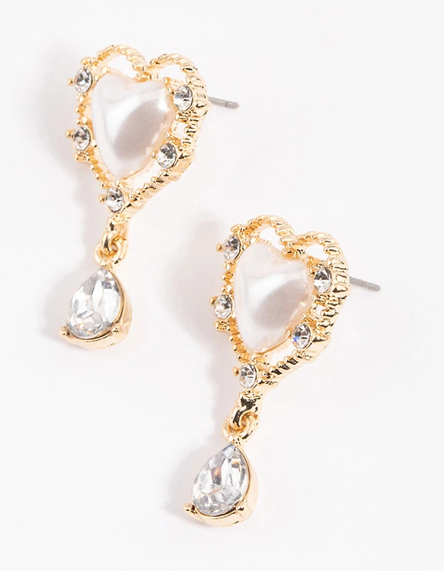 2.5-7.0mm Freshwater Cultured Pearl and Lab-Created White Sapphire Graduated Drop Earrings in 10K Gold