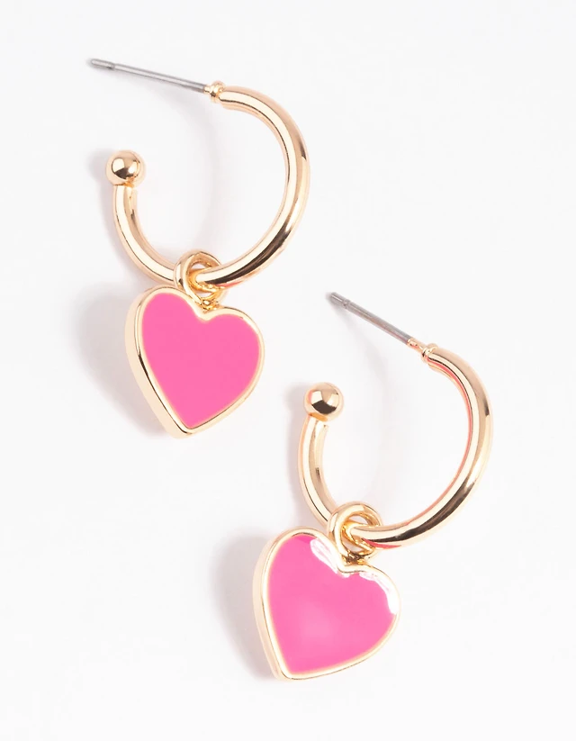 27.0mm Heart Dangle Huggie Hoop Earrings in 10K Gold