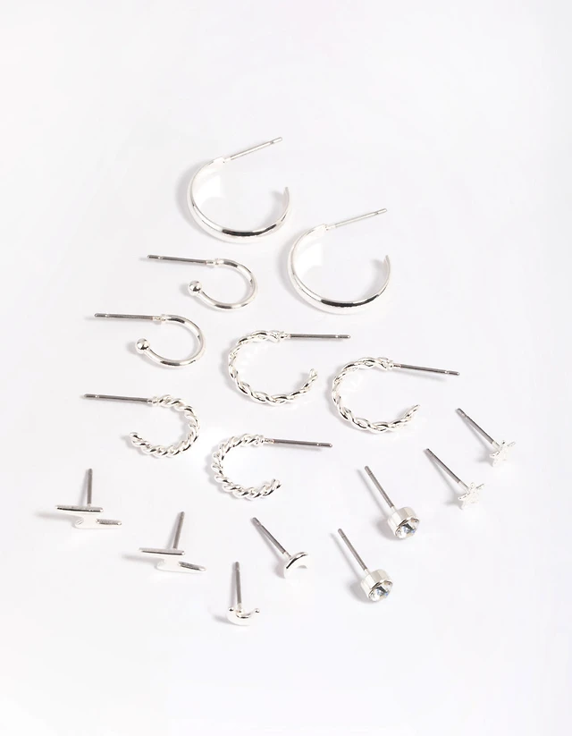 Silver Garden Stud & Hoop Earrings 6-Pack