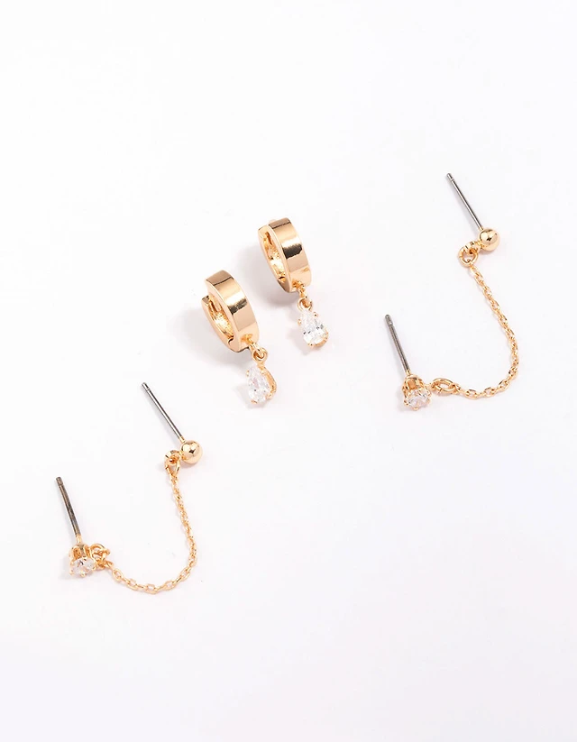 Gold Plated Cubic Zirconia Baguette Hoop & Chain Earrings 4-Pack