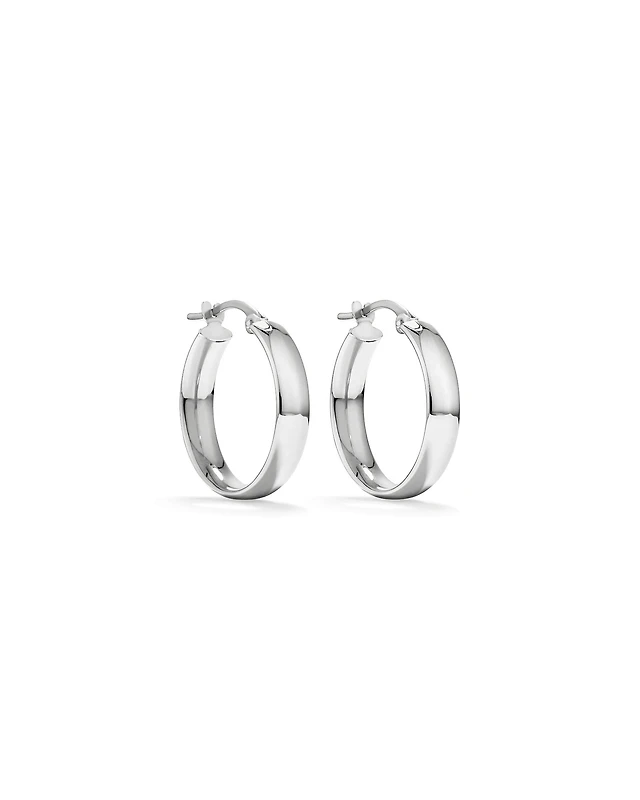 14K White Gold 15mm Diamond Cut Wedding Band Round Hoop Earrings