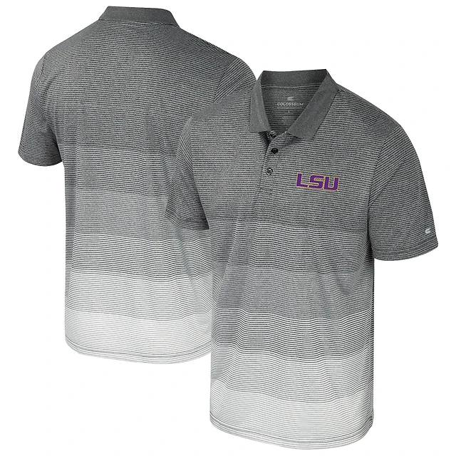 Men's Colosseum Gray LSU Tigers Striped Mesh Polo