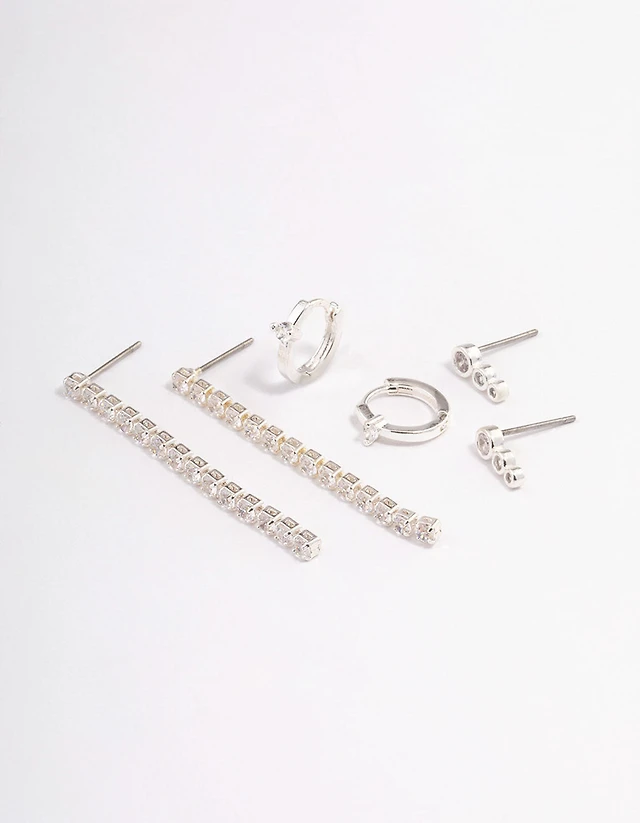 Earrings with Created Blue Sapphire and Cubic Zirconia in Sterling Silver