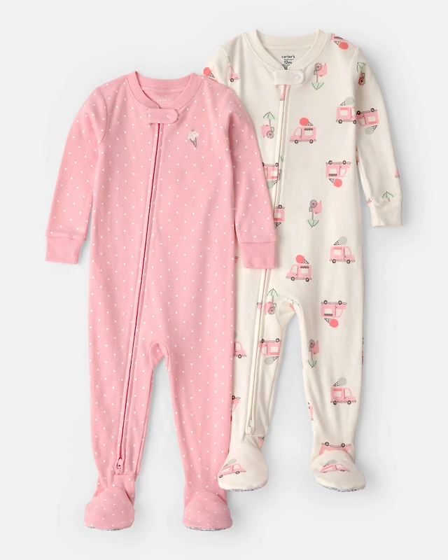 Toddler Girl 2-Pack Ice Cream Truck 100% Cotton Snug Fit 1-Piece pyjama - Pink/Ivory