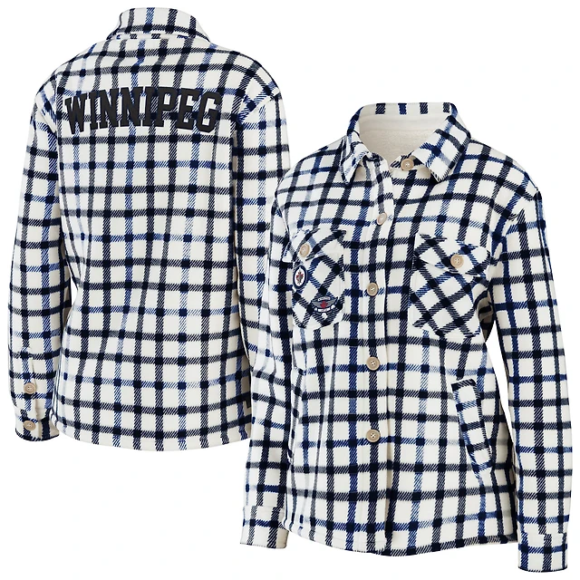 Women's WEAR by Erin Andrews Oatmeal Montreal Canadiens Plaid Button-Up - Shirt Jacket