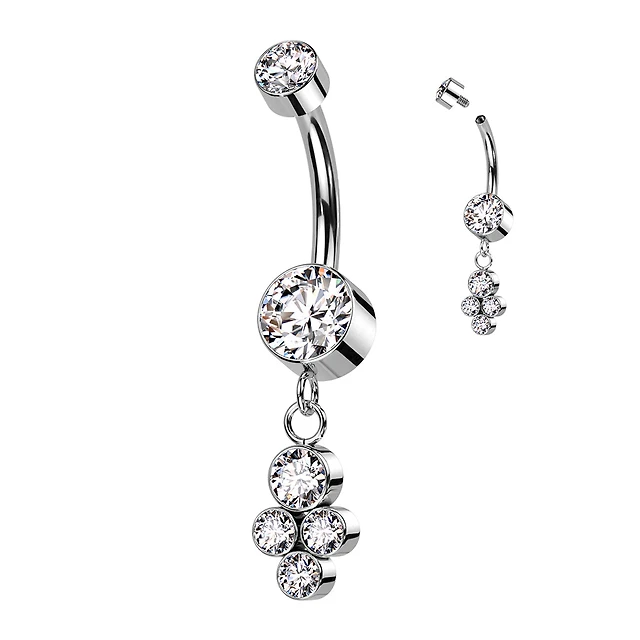 Implant Grade Titanium CZ Bezel Dainty Circle Cluster Dangle Belly Ring