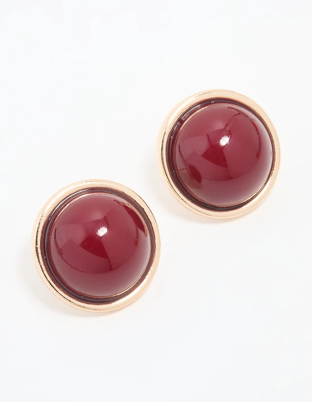 Gold Pink Marbles Stone Textured Oval Stud Earrings