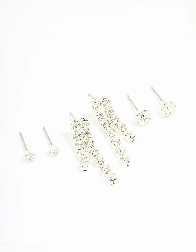 Square Silver Cubic Zirconia Necklace & Stud Earrings Pack