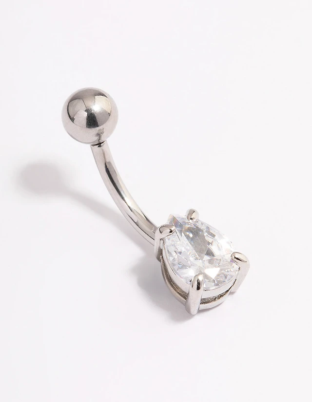 Titanium Cubic Zirconia Teardrop Dangle Belly Piercing
