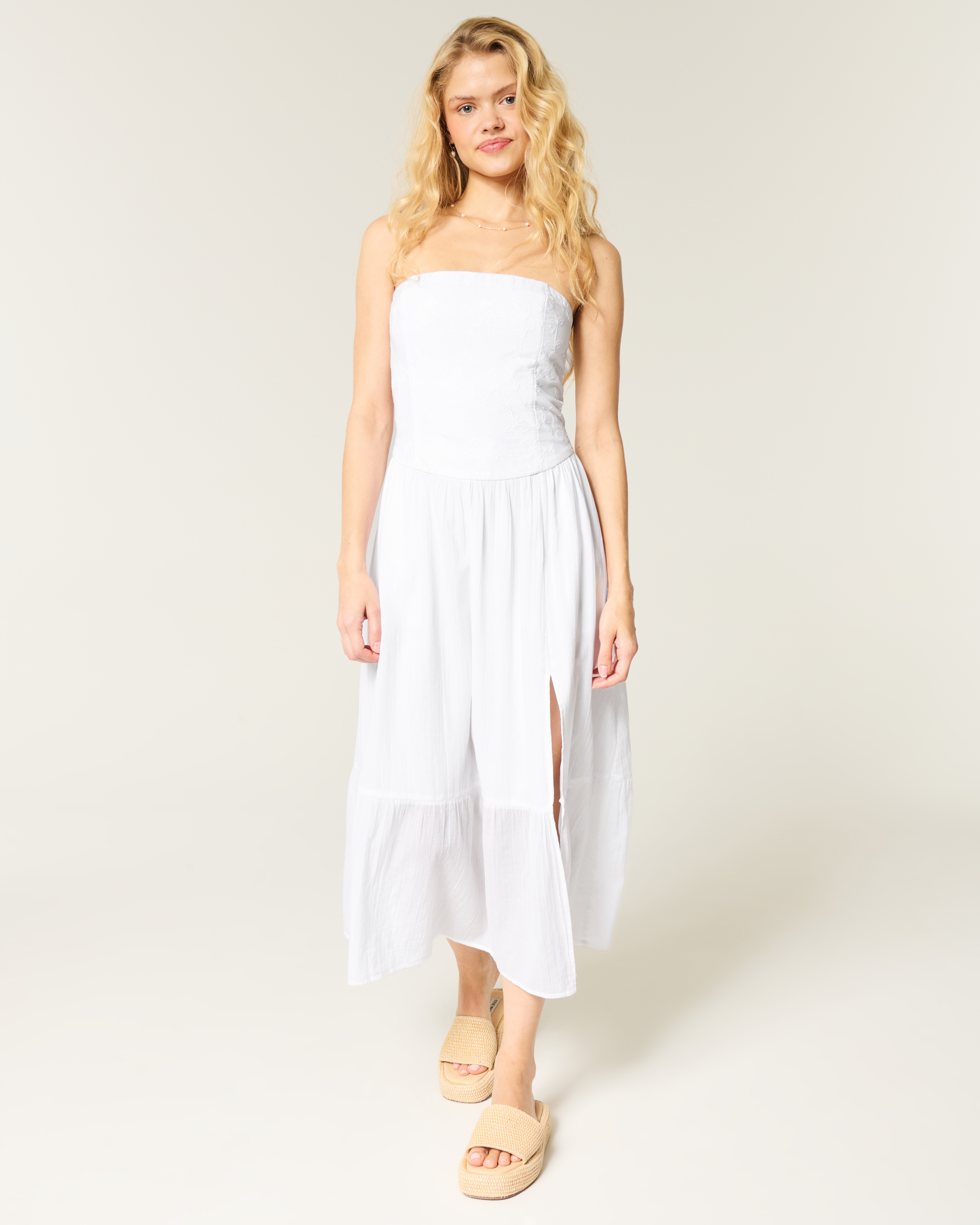 Valeda Off-White Mesh Details Bandage Midi Dress