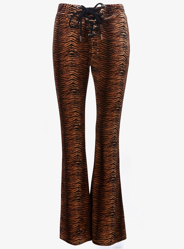 Tiger Animal Print Velvet Flare Bell Bottoms Pants