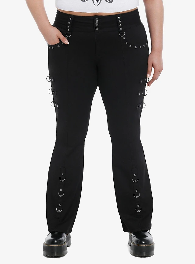 Black Stud D-ring Flare Pants Plus Size