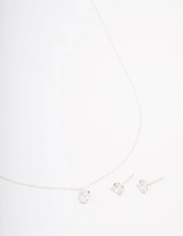 Silver Cubic Zirconia Round Earring & Necklace Set
