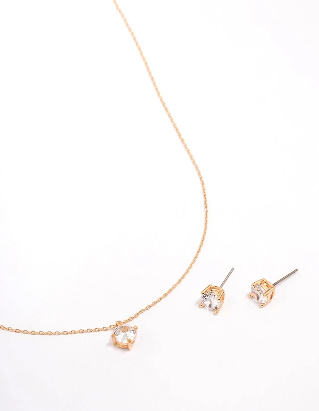Gold Cubic Zirconia Classic Necklace Earrings Set