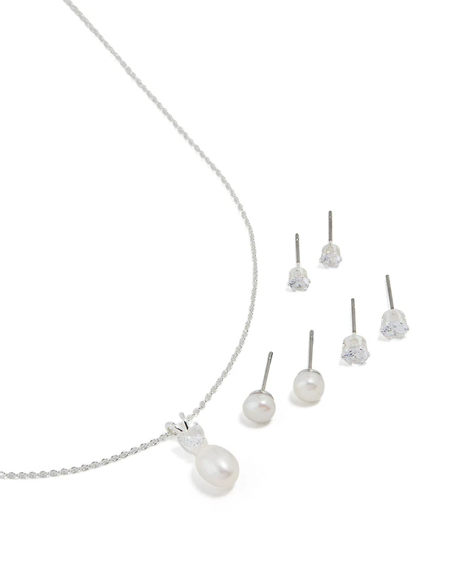 Diamond Accent Infinity Earrings and Pendant Set in Sterling Silver