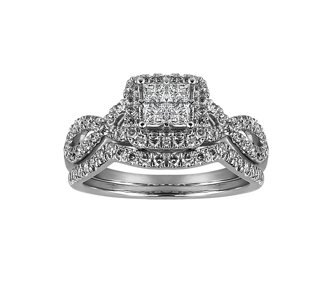 1.12 CT. T.W. Composite Diamond Rectangle Frame Twist Bridal Set 14K White Gold