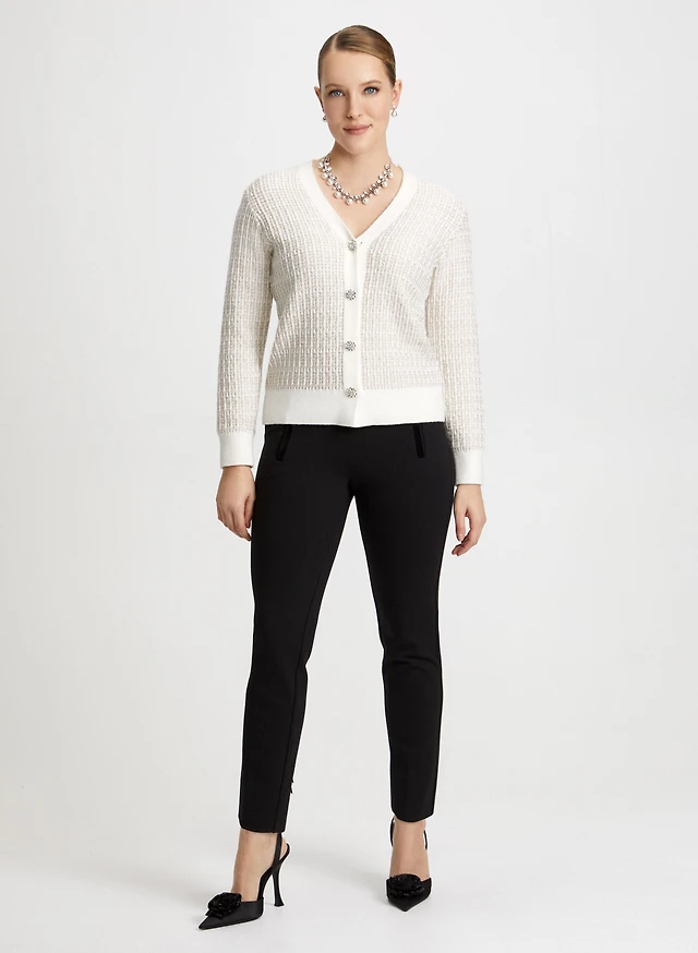 Jewel Button Cardigan & Lace Trim Pants