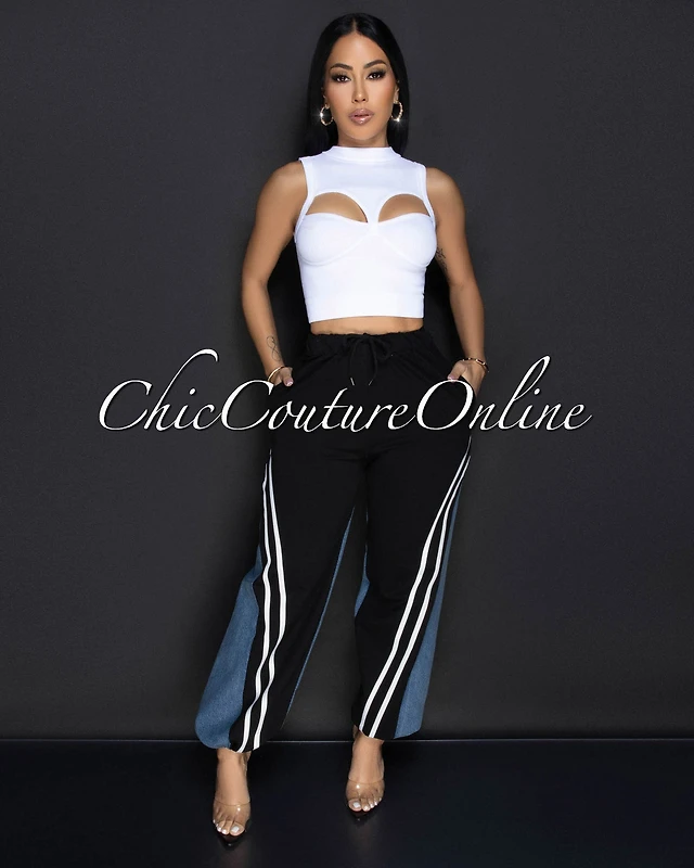 Rorey Pink Grey Denim Sporty Joggers Pants