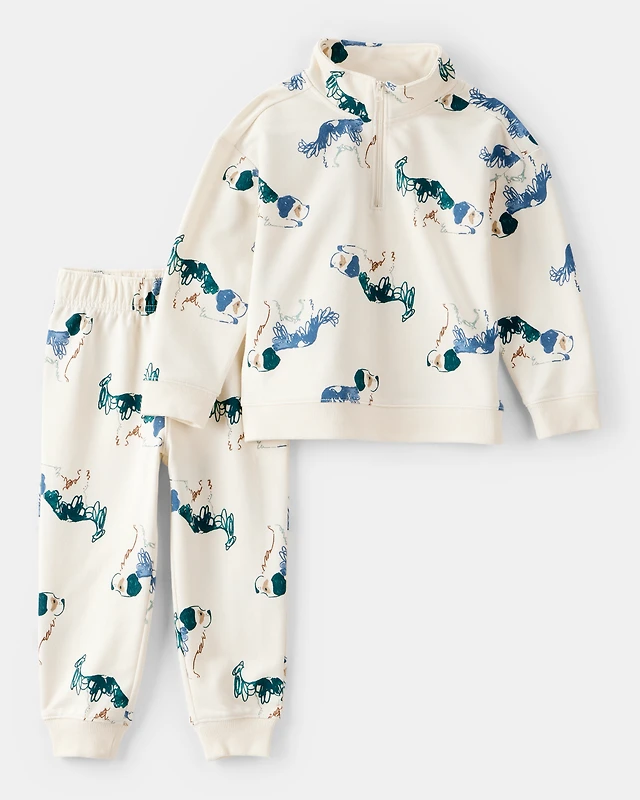 Toddler Boy 2-Piece DayDream Fleece Dog Zip-Up Jacket & Jogger Pant Set