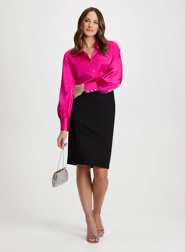 Satin Rhinestone Detail Blouse & Pencil Skirt