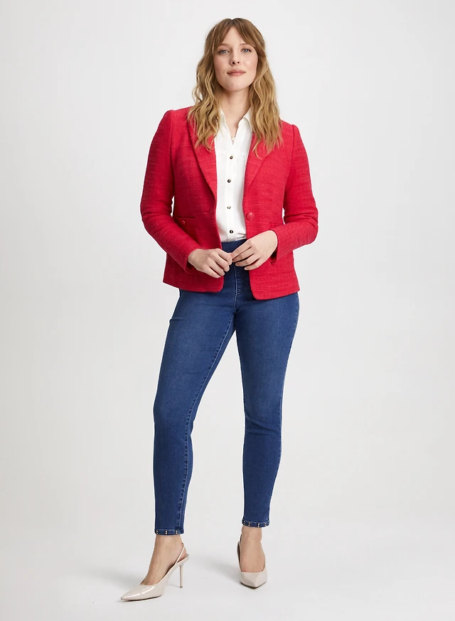 Boyfriend Style Button Cuff Blazer & Pull-On Bootcut Jeans
