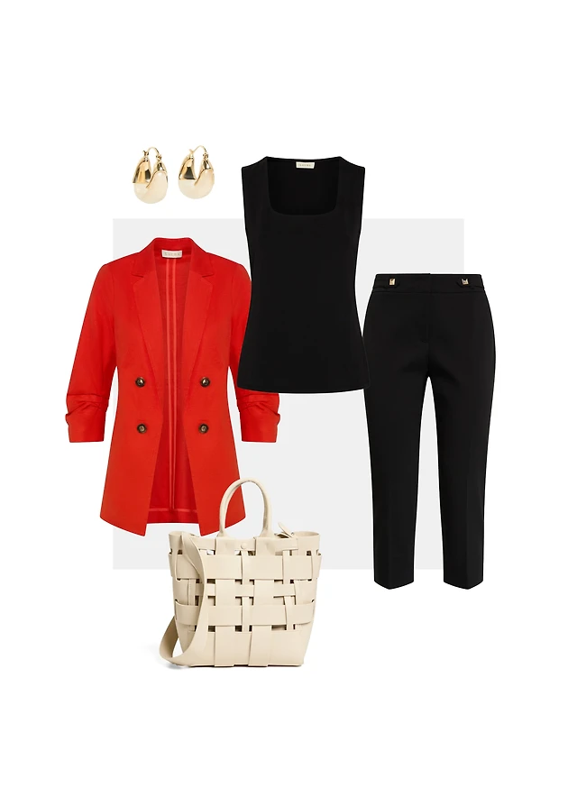 Vegan Leather Trim Blazer & Emma Slim-Leg Pants