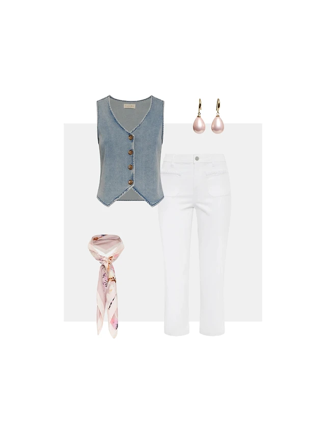 Short Linen Jacket & Denim Midi Skirt