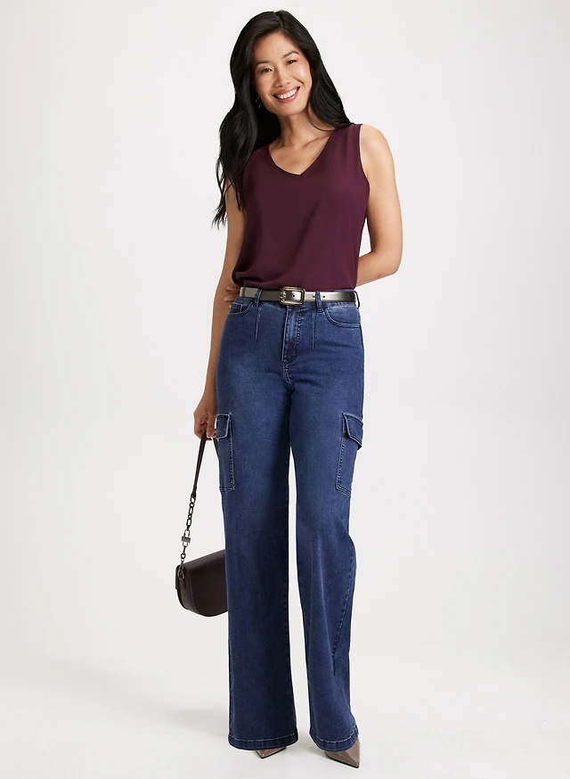 V-Neck Blouse & Cargo Jeans