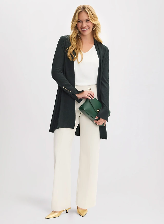 V-Neck Cardigan & Vegan Leather Detail Pants