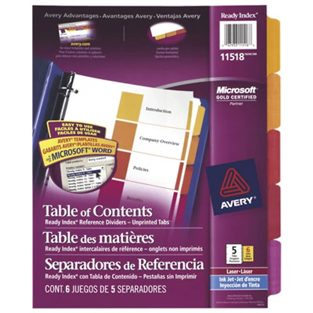 Avery Ready Index Table of Contents Tab Dividers (AVE11520) - 10 Tabs - 6 Pack - Assorted Colours